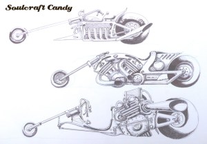 I wasn’t anticipating what happened next. I pulled out some ideas and started to draw them up, and found myself going into a huge amount of detail. It was as if I’d subconsciously decided that I was going to design bikes for real and spent absolutely ages agonising over what I was creating. The drawings weren’t bad, no, but I worried that I would lose something or that they would become a little sterile. You can see from this next image that it’s a long way from what was happening previously.