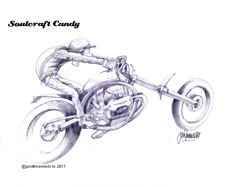 Because I’d been thinking about context and how to create it in the drawings I’d decided to always draw a rider on board unless he’s close by doing something to the bike and it’s stationary. I kind of thought that that, and the attitude of the bike in the picture would be enough to keep me going for now and that I’d worry about fuller backgrounds later on. I wanted to master drawing the bikes first. I also wanted to try and find a style of drawing that was comfortable and more importantly, repeatable, in the sense that layout and other elements would come more naturally rather than feeling forced in any way.