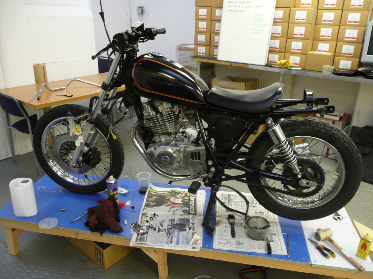 There is a moment at a time like this when your brain seems to be ahead of you somehow. Just the act of walking up to the stripped down machine filled me with a sense that I was onto something here. It’s as if your subconscious has already worked everything out using all of the visual information that your eyes have previously supplied. All bike seats seem to affix in a similar way, a tongue under the nose of the seat fits under a bar in the frame and the rear is then fastened down. I went straight over to the bike, got the seat out of my bag and plonked it on, stood back, raised an eyebrow and put the kettle on. With coffee in hand I returned to see if my luck was in.