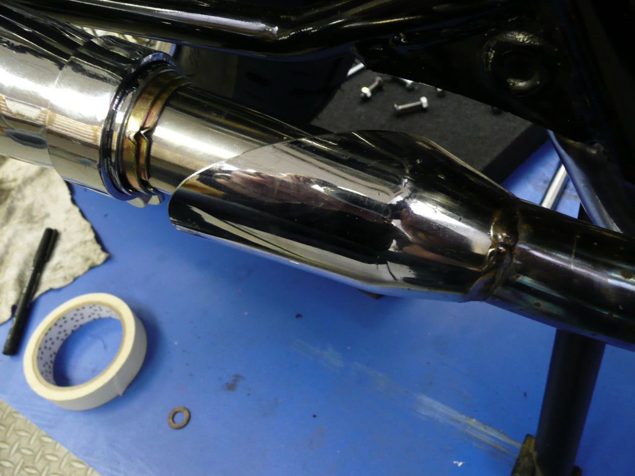 So the pipe went on very quickly much to my relief. But it was loud, so I knew i’d have to do some baffling if it was to stand any chance of getting through the MOT test.