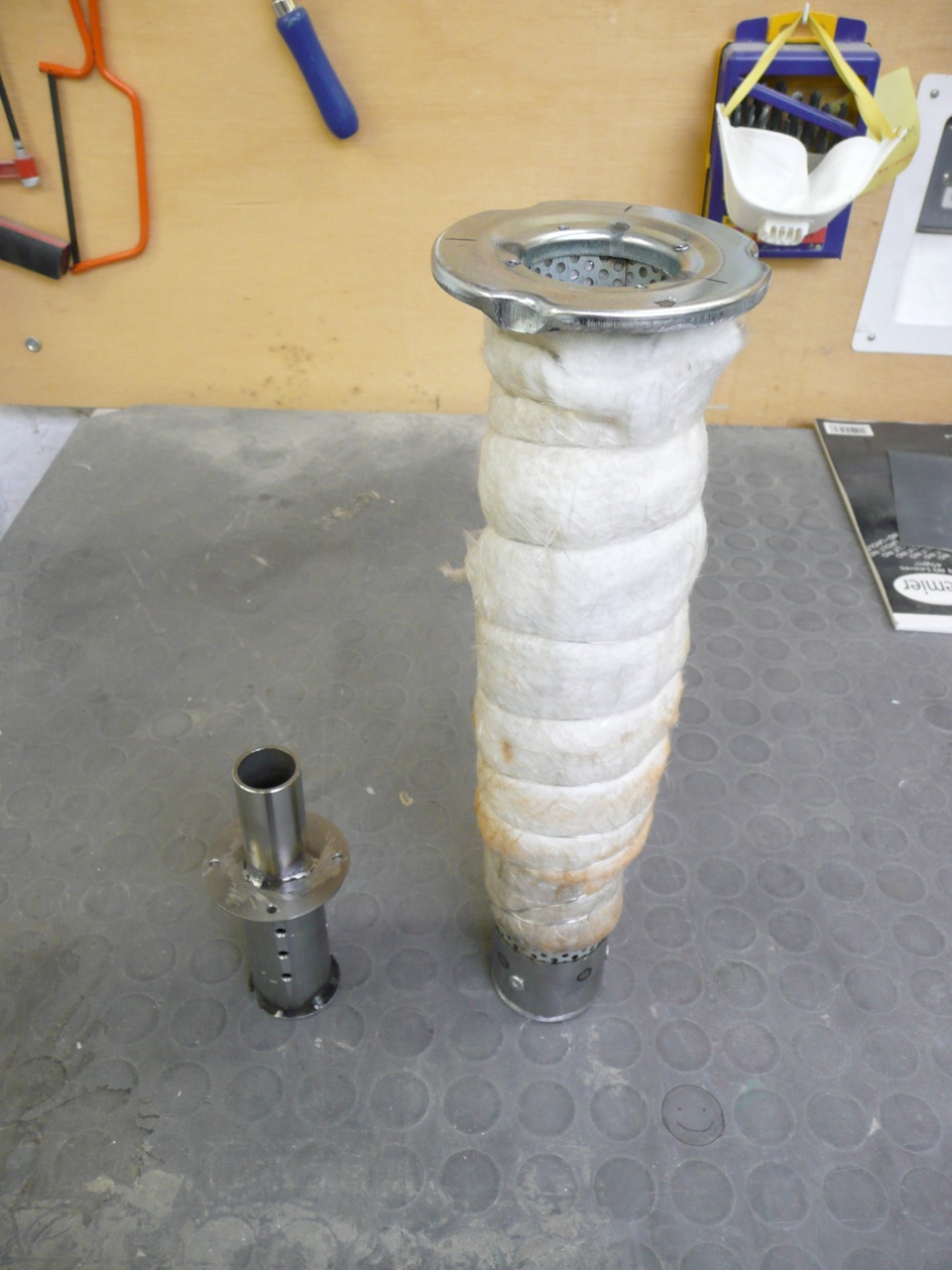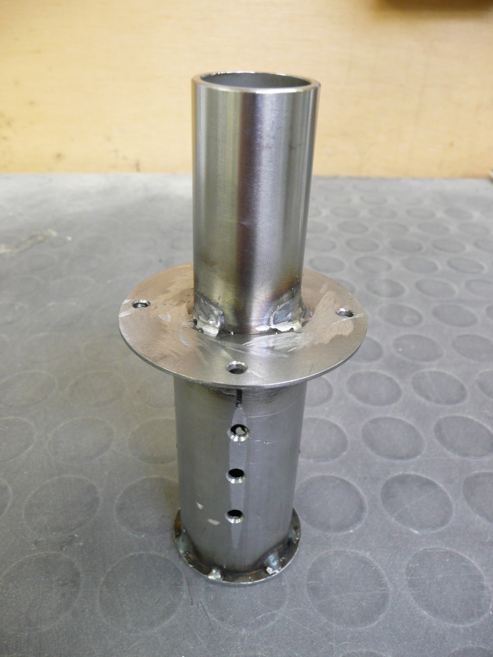 After a quick discussion about exhausts with the guys who’s workshop I was borrowing it was decided that the best thing to do was make a smaller secondary baffle that would fit into the end of the main pipe. Reckoning that the area of the holes in the internal cylinder should match that of the outlet it was time to have a go with the MIG welder. Not having used one much before, a quick session on the net provided some basic guidance to supplement the rather sketchy instructions contained in the user manual.