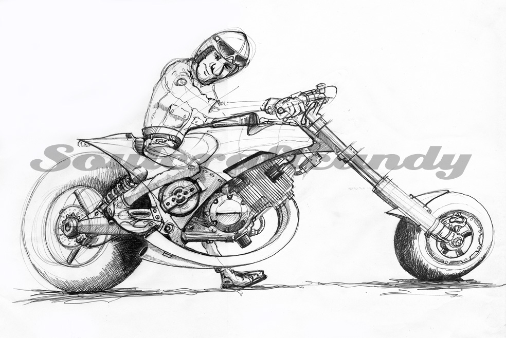 Back in early January, post No. 50 featured the finished version of the first of what have become known as the “Scribble” drawings. It depicted two guys vying for the lead in an impromptu street race somewhere out in the middle of nowhere on an empty road.