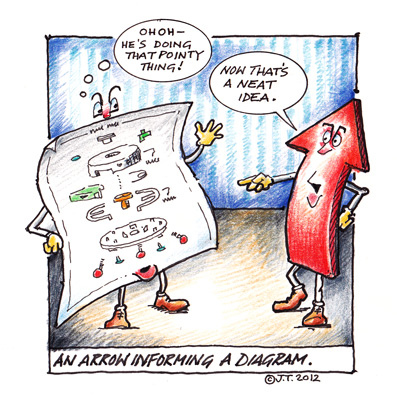 Opening any book about creating comics and graphic novels invariably floods you in established conventions for framing, speech and thought balloon use, caption box positions, view angles, perspectives and all manner of inking and texturing techniques. All of it is there for us to learn from. It can be a bit intimidating. The best bit though is realising that none of it is compulsory, and that all of these things are there to be played with. Their task is to inform the image being created, rather like an arrow or two might inform a diagram, so there’s no need to use all of them all of the time. Much more fun to find the things that work for you and the types of image you create, than feeling the need (and pressure) to become a master of all before venturing to the paper to make your first mark. There will be lots of experiments and invariably lots of trial and error involved but, without learning through doing, things won’t move forward, or worse get stuck in a repetitive rut. And we can’t have that.