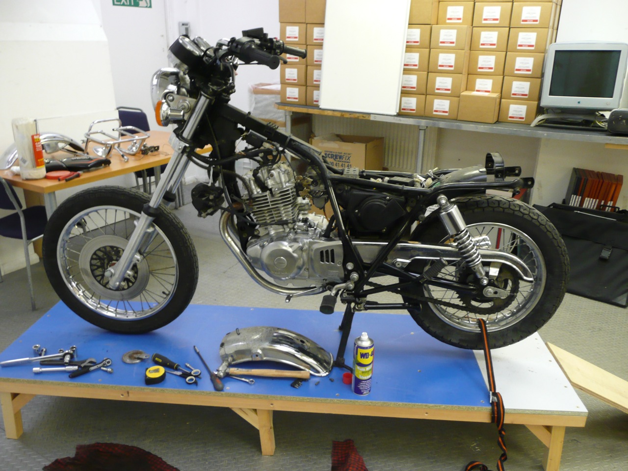 There had been a plan in the back of my mind for a while to refresh the little 250cc motorcycle that I’d modified some years ago when I started this blog. Over the years, as the miles have racked up, it has suffered the usual knocks and scrapes that these things are victim to, and overall the finish was starting to look very tired. I wanted to give it a freshen up, and make some changes to the overall design that I’d not got right first time around. So what to do for a making project was all ready and waiting, I just had to start. Before now I have relied on using workshop space owned by other people, this time around I didn’t have that option so my little shed was going to need to be the work space that I could use. As you can see it’s a small building with very limited floor area, but it does have an electricity supply, a big light on the rafters and a work bench across one end. It houses all of my various tools, materials and other useful stuff accumulated over years of working as a prototype builder and modelmaker. Being of a sturdy design and construction it allows all manner of things to be hung from the walls, freeing up floor area and permitting at least a modicum of organisation. I don’t own any large machine tools, I’d need a bigger shed if I did, so most of the work would be done with hand and power tools with my trusty old Black and Decker Workmate acting as a secondary work bench. The only thing I can’t, and likely won’t do in there is spray paint, that will have to happen elsewhere. The shed was here in the garden when we moved into the house and I’ve always wanted to use it as a making space. now was my chance to put that thought into practice.