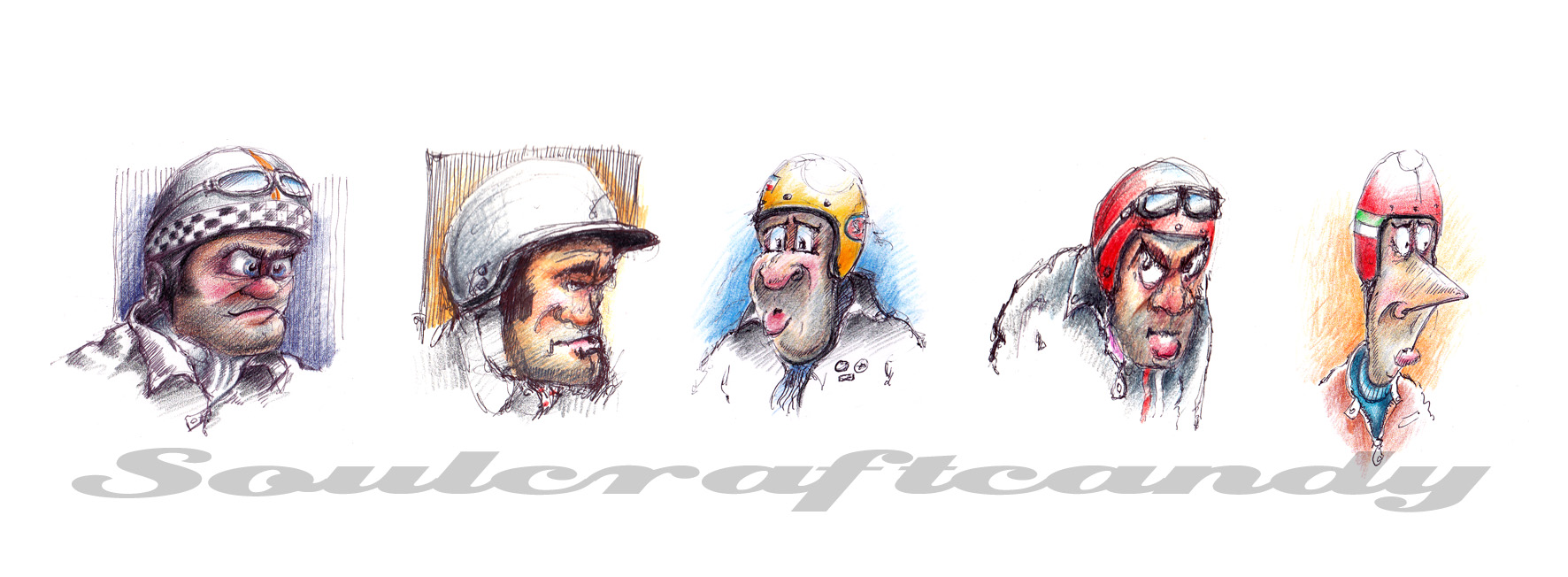 One other aspect of this exercise that has caused some pondering is that of subject focus. Since starting this whole bike drawing thing I’ve quite happily jumped from one type of subject to another. A dragster, then a road bike, then something else etc etc. All well and good you might think, but actually it was starting to be problematic in the sense that it was becoming hard to separate certain specific thoughts and ideas for one image from another. In simple terms, details for one drawing were ending up on another and vice versa. This probably had, or has, something to do with my habit of having two or three drawings on the go at any one time. As an attempt at remedying this a different approach was needed. So now instead of multiple drawings of multiple themes, the latest project concentrates on a core theme with multiple drawings around it. It already feels a better way to work as there seems to be a greater cohesion in what’s being created. This first series is about cafe racers and I’ll explain more about it in the next post. For now here are some of the preliminary sketches that are currently adorning the small wall of the studio.